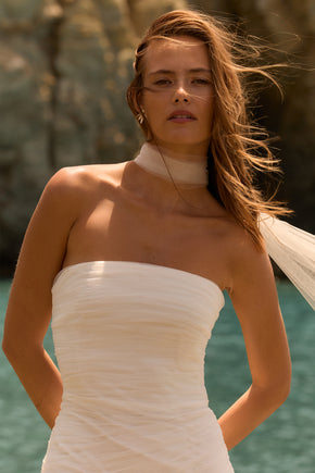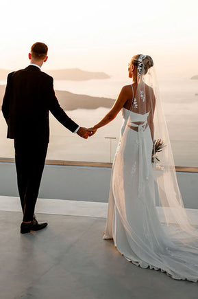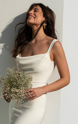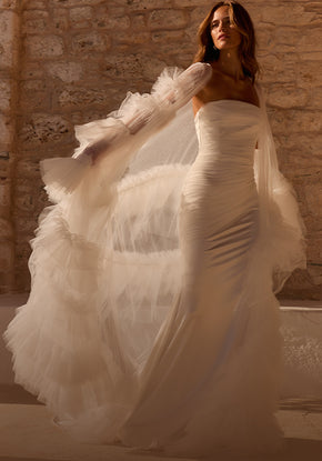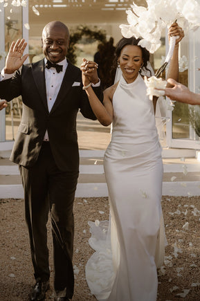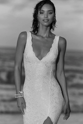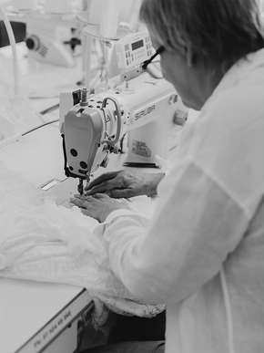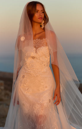 Handcrafted wedding gowns made from luxurious fabrics.