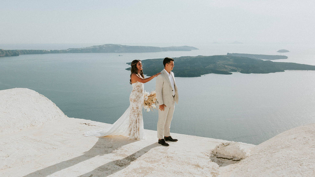 Introducing our first NATHALIA #GRACEBride and wow is she coming in with a bang! Davionna and Chad exchanged vows at their romantic Santorini elopement. -