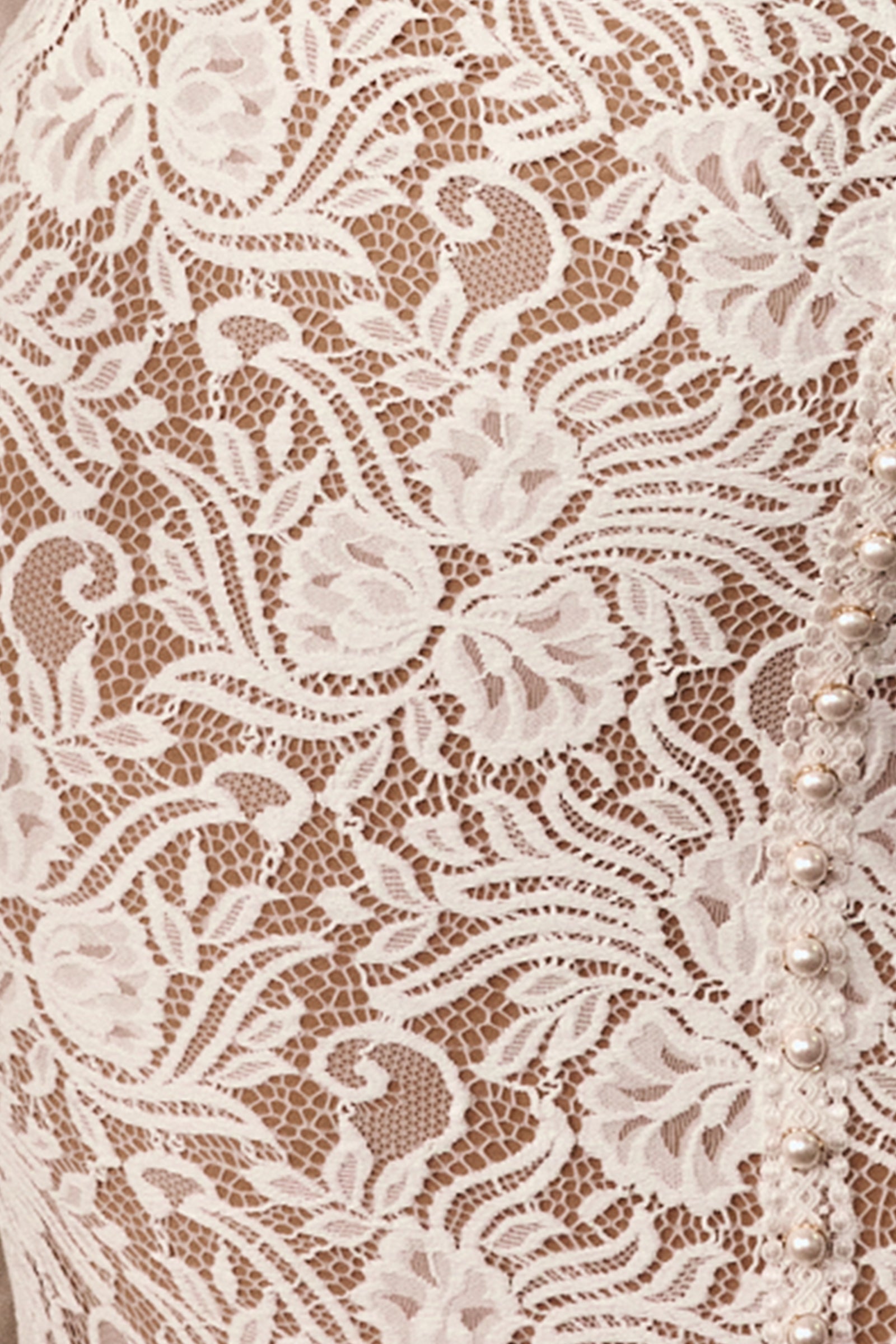The Baya Gown is crafted from our signature GRS-certified stretch lace, designed to move fluidly while offering elevated support. A striking low V neckline draws the eye and elongates the form, balanced by long fitted sleeves that showcase the intricate lace pattern.