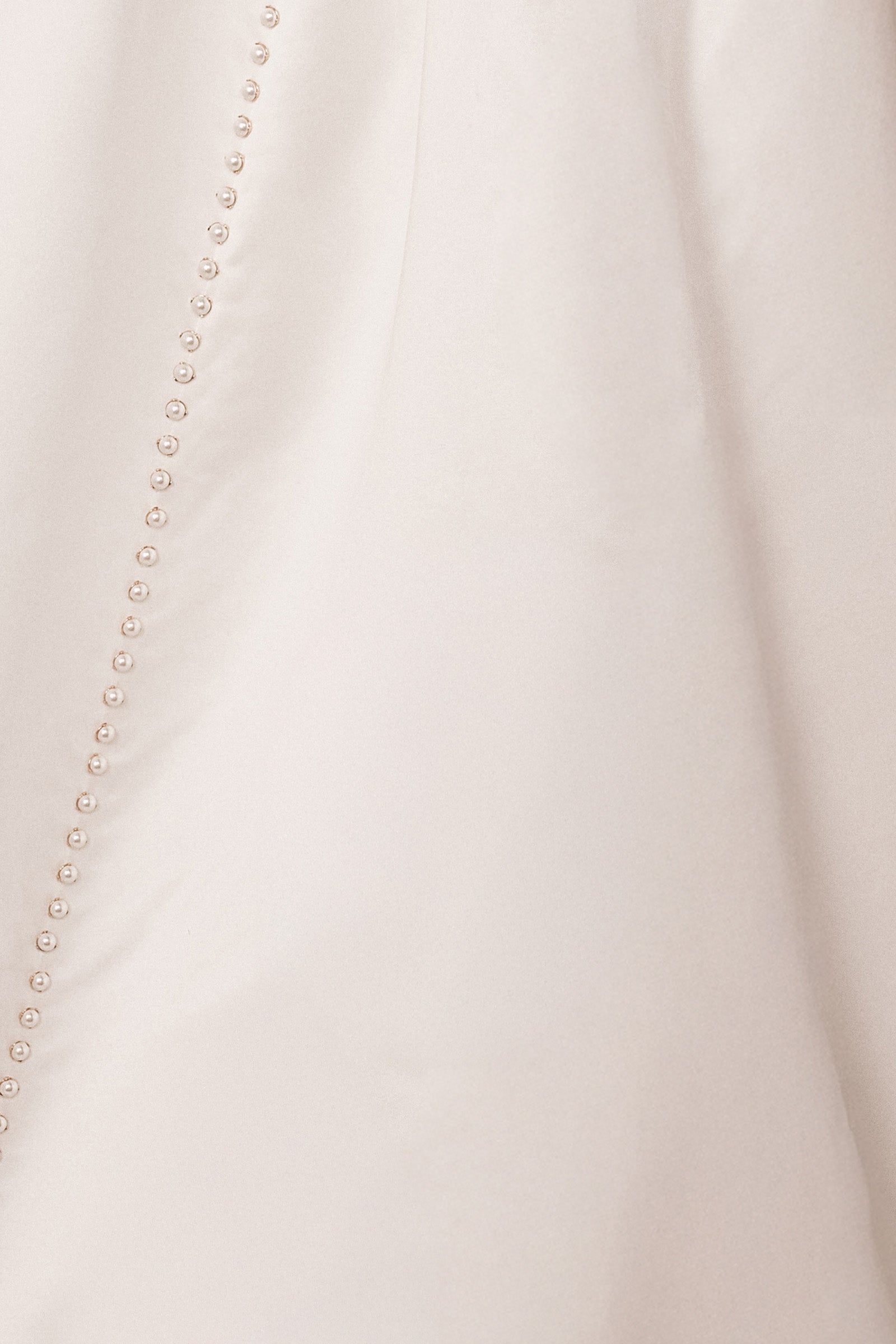 • Luxurious ivory Mikado satin with delicate lace eyelash trim at neckline